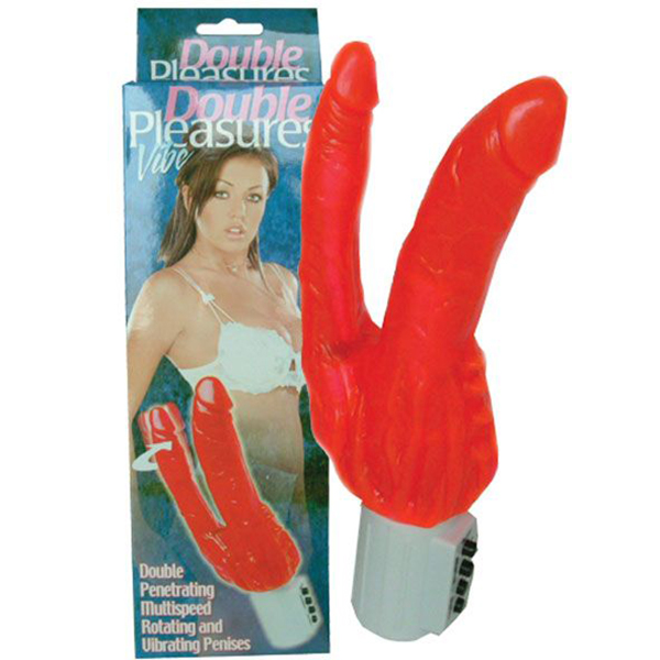 Двойной вибратор Double Pleasures Vibe поможет вам ощутить все грани удовольствия. Секс-игрушка предназначена для двойного проникновения анального и вагинального. Вагинальная часть имеет реалистичный внешний вид и мощную вибрацию. Анальная часть имеет небольшой размер и хорошо сгибается. Анальная часть оснащена функцией вращения, что значительно усилит удовольствия. Вибрация и ротация управляются при помощи кнопок расположенных на ручке вибратора. Для работы понадобится три батарейки АА.