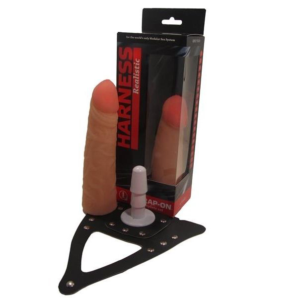 Набор из трусиков со штырьком Harness (Харнесс) из кожзаменителя и насадки из материала кибер-кожа (суперреалистичный материал). Насадка одевается на штырек, имеющийся в трусиках и получается страпон.