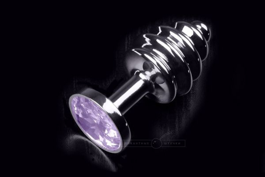 Маленькая серебристая анальная пробка из металла с нежно фиолетовым кристаллом в основании. Ее форма напоминает капельку с зауженным кончиком для легкого введения. Витой рельеф предназначен для лучшей стимуляции и максимального удовольствия.