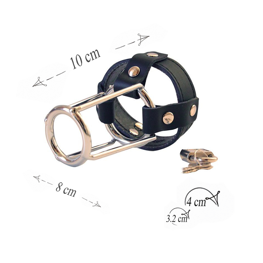 Пояс верности NotabuBDSM, выполненный из крепкого металла и натуральной кожи, идеально подходит для ролевых игр в стиле BDSM, предлагая новые ощущения и впечатления. Надевается на половой орган и фиксируется на яичках с помощью кожаного ремешка и замка. Конструкция пояса обеспечивает комфорт при использовании, не вызывая дискомфорта, и позволяет полностью сосредоточиться на процессе, не отвлекаясь на застежки и ремешки. Предотвращает эрекцию и половой акт. Легок в применении. Полностью водонепроницаем, что делает его подходящим для использования в любых условиях. Прост в уходе — достаточно обработать аксессуар очищающим спреем с антимикробным эффектом. Длина клетки составляет 5,5 см.