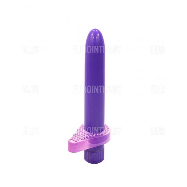 Пластиковый вибратор и эрекционное кольцо приятного фиолетового цвета.
