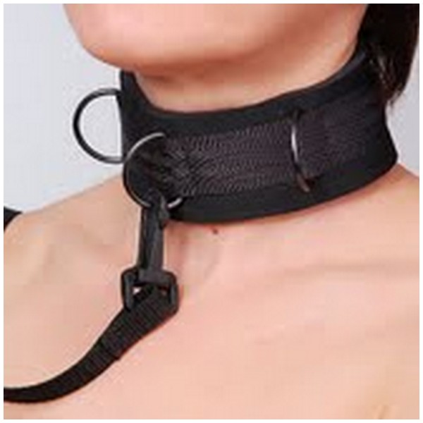 Черный неопреновый ошейник, в котором удобно и легко с тремя корабинами для фиксации.