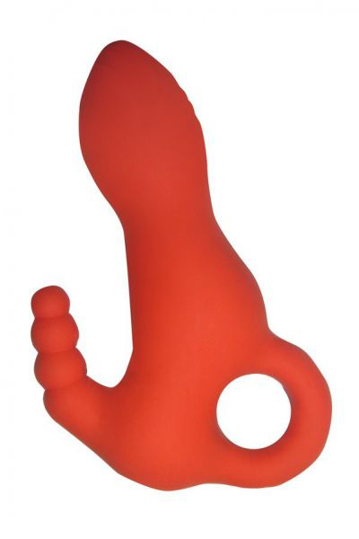 Стильный вибратор с клиторальным стимулятором красного цвета. Его уникальная форма позволяет одновременно стимулировать вагинальную и клиторальную часть. Вагинальная часть немного изогнута с утолщенной головкой, что позволит наилучшим образом стимулировать точку G. У основания имеется удобное кольцо-фиксатор.