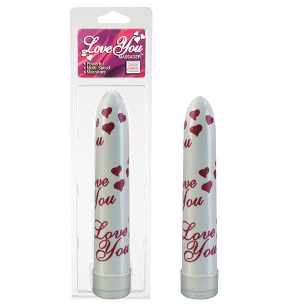 Секс-игрушка из пластика белого цвета. На всей поверхности нанесены надписи и рисунок в виде маленьких сердечек. Встроенный мощный моторчик классической вибрации корректируется у основания на корпусе.