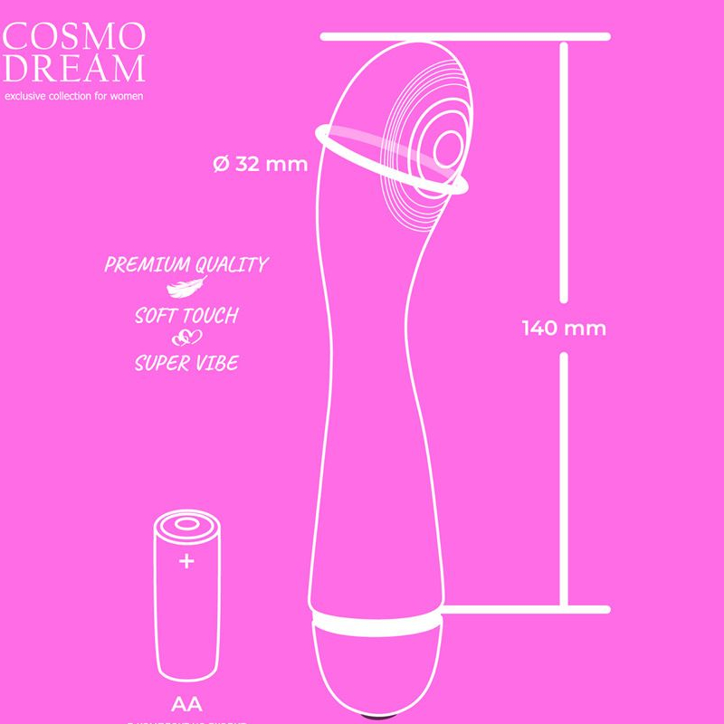 Вибромассажёр Cosmo Dream — ваш идеальный спутник в мире удовольствий. С его длиной 14 см и диаметром самой широкой части 3,2 см, он обеспечивает восхитительные ощущения. Небольшие рёрышки на поверхности создают дополнительную стимуляцию. Специальная выпуклость предназначена для точки G, чтобы каждое прикосновение было неповторимым.