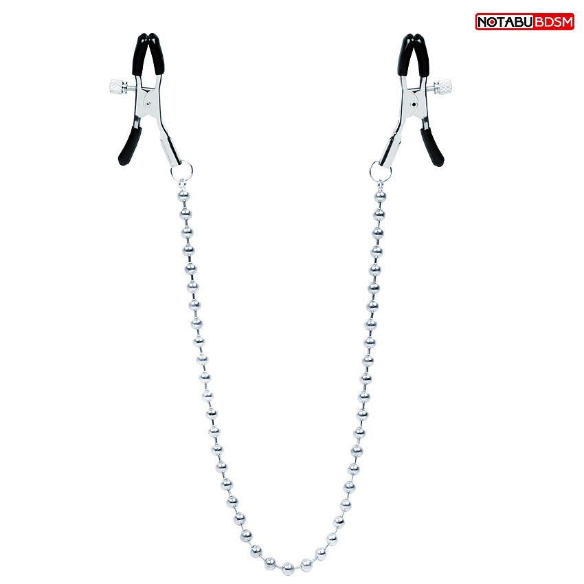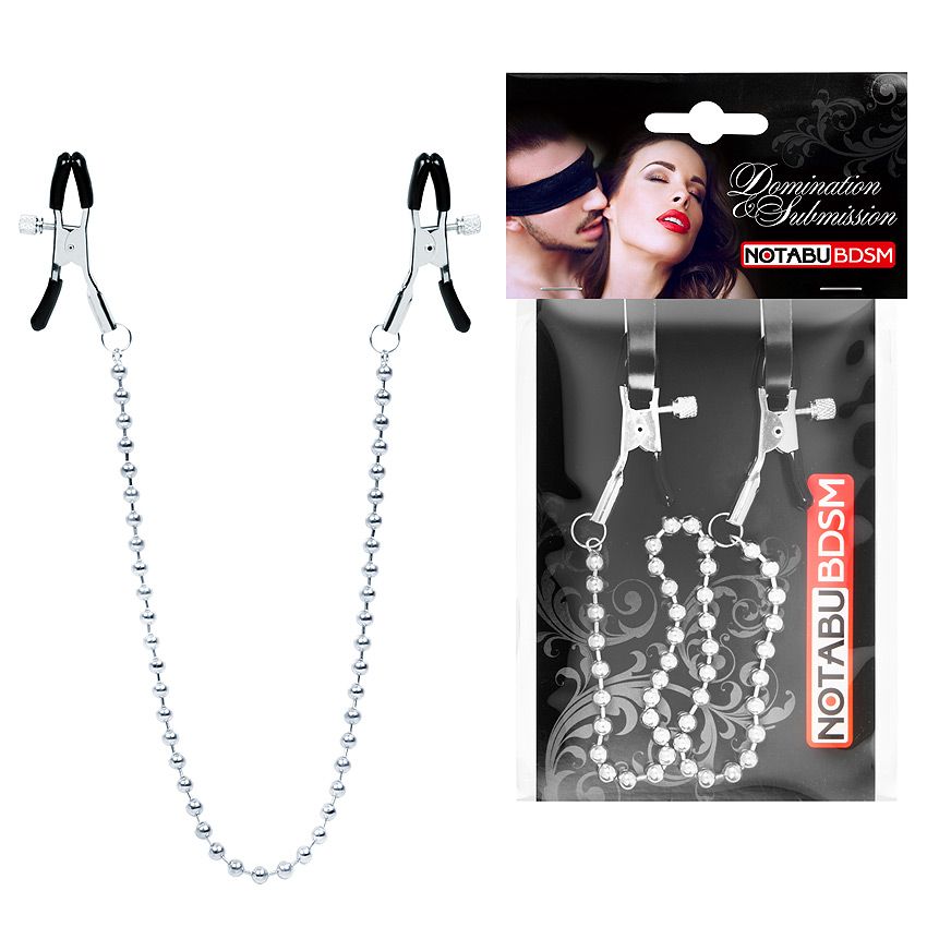 Зажимы на соски Notabu BDSM с бусинами — это зажимы с накладками, предотвращающими травмы. Легкая металлическая цепочка с бусинами придает утяжеление, повышая степень стимуляции. Регулировочный винт обеспечивает индивидуализированное сжатие. Эти аксессуары просты в использовании и не требуют специального ухода. Они идеально подходят для сольных и парных сексуальных игр, расширяя возможности для экспериментов и удовольствия.